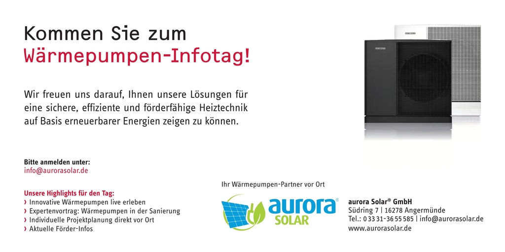 Sie finden uns in den Räumlichkeiten der aurora Solar GmbH, Südring 7, 16278 Angermünde